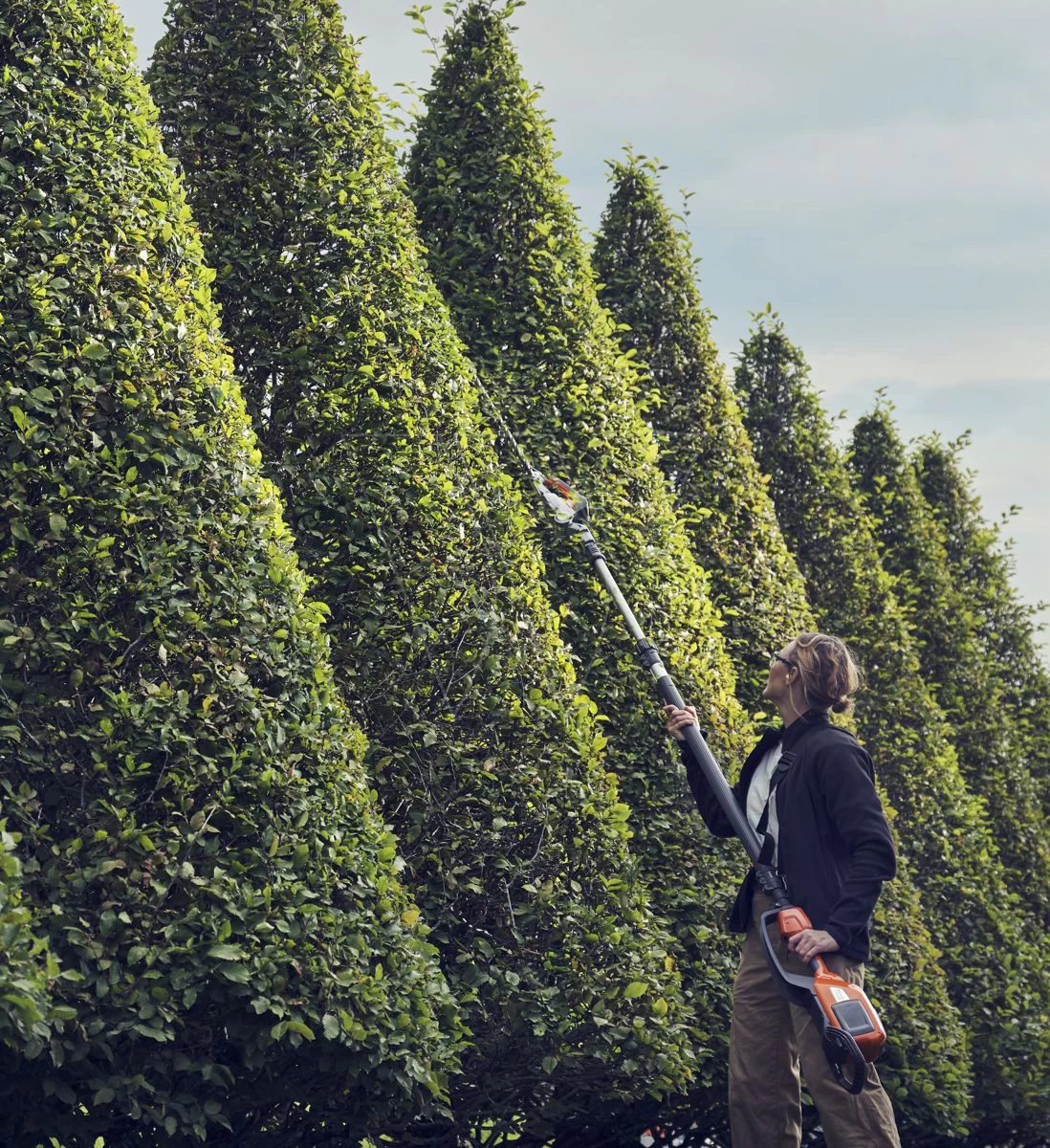 De Husqvarna 520iHT4 is een accu gevoede telescopische heggenschaar met hoge capaciteit en een bereik tot 4,5 m, ontworpen voor professioneel gebruik. Hij snijdt efficiƫnt brede, hoge en lage heggen dankzij de in lengte verstelbare telescoopbuis en de in hoek verstelbare maaibalk. De maaibalk kan ook gemakkelijk worden opgevouwen voor eenvoudiger transport en opslag.