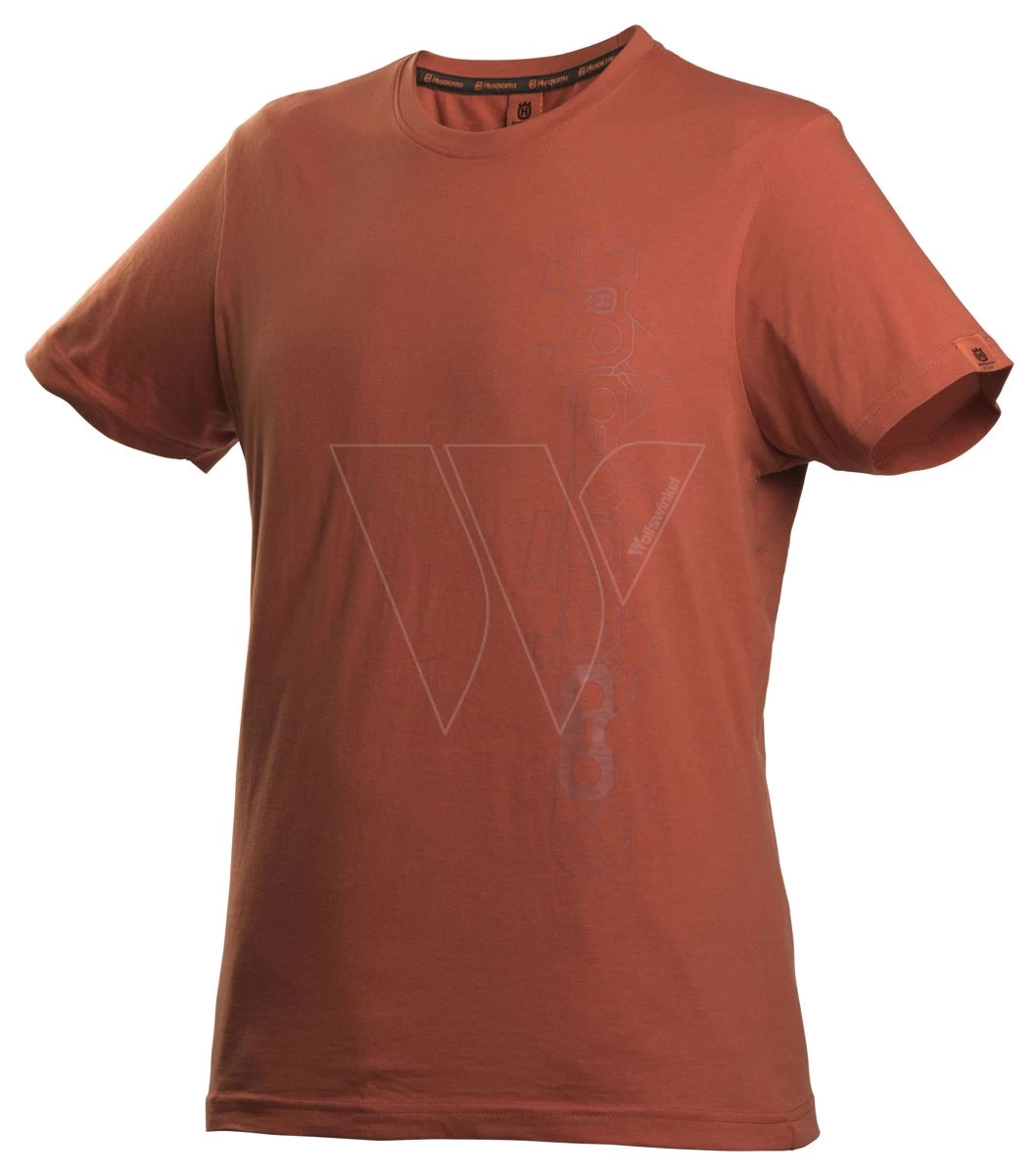 Husqvarna heeft vanaf nu ook vrijetijdskleding in de collectie. Dit comfortabele Husqvarna t-shirt is gemaakt van hoogwaardige kwaliteit. Het t-shirt heeft een roest kleur en ketting van een motorzaag op de voorkant. Dit t-shirt is zowel geschikt voor mannen als voor vrouwen. Een t-shirt voor een echte Husqvarna liefhebber!